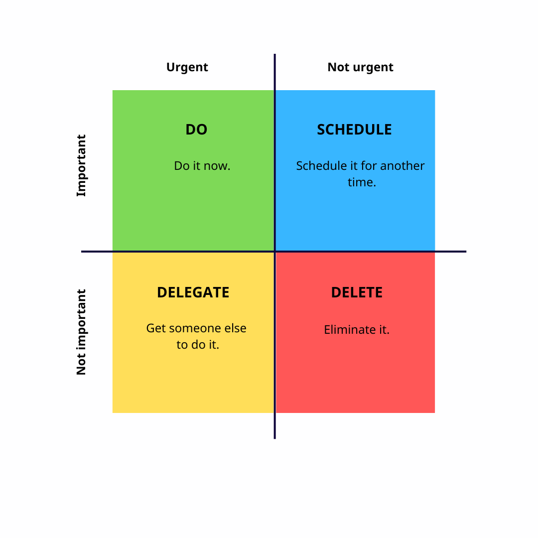 A simple yet powerful tool, aids in prioritising tasks effectively. It categorises tasks into four quadrants based on their urgency and importance.